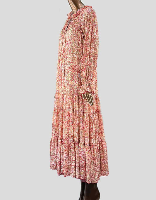 Free People Red Print A Line Maxi Dress With Tiers Small