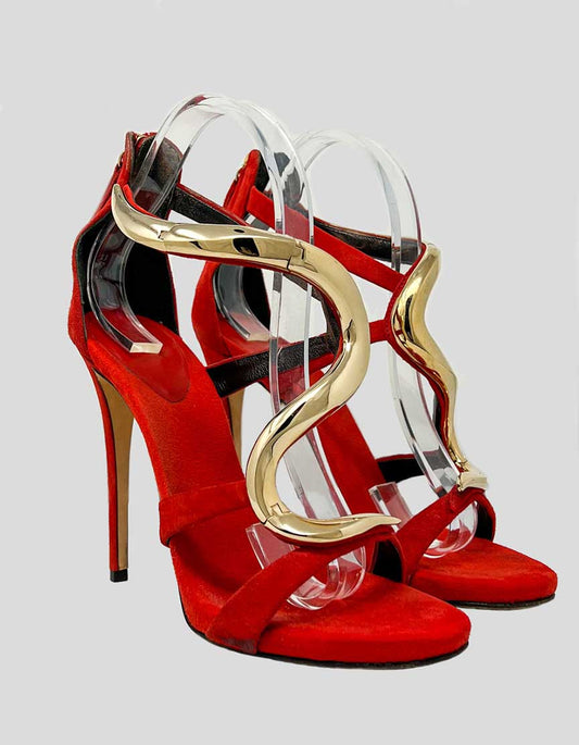 GIUSEPPE ZANOTTI Venere metallic-snake Open Toe Heels - 37.5 IT | 7.5 US