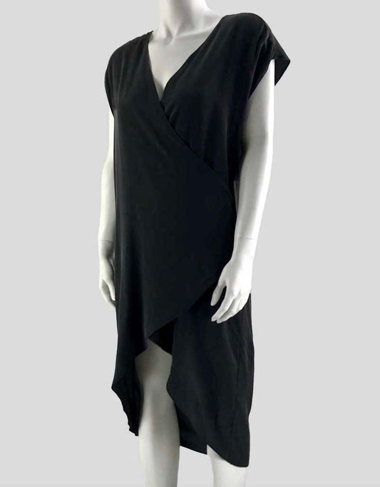 Sam/Lavi Black Faux Wrap Sleeveless Silk Midi Dress Size X-Small
