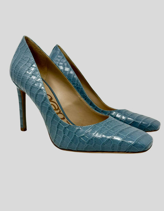 SAM EDELMAN Leather Croco Square-Toe Pumps - 7.5 US