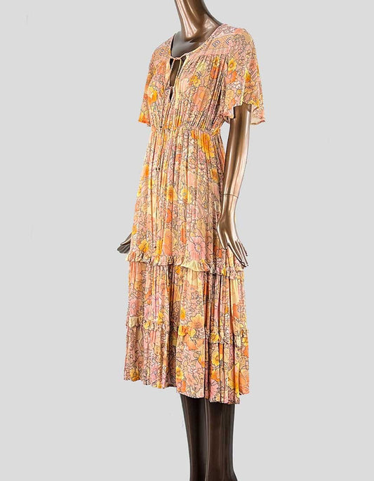 Spell And The Gypsy Collective Brown Dress With Peach Design Size Small