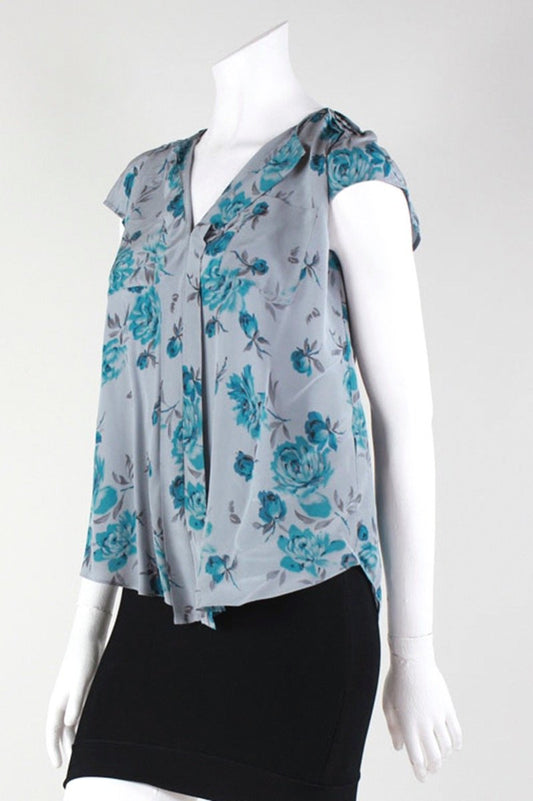 Rebecca Taylor Grey Floral Print Short Sleeved Pullover Blouse With Front Pockets Size 2