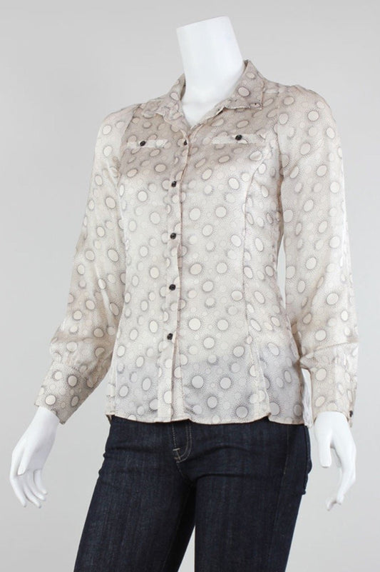 Reiss Long Sleeve Button Up Blouse With Stand Collar And Breast Pocket Accent Size 2