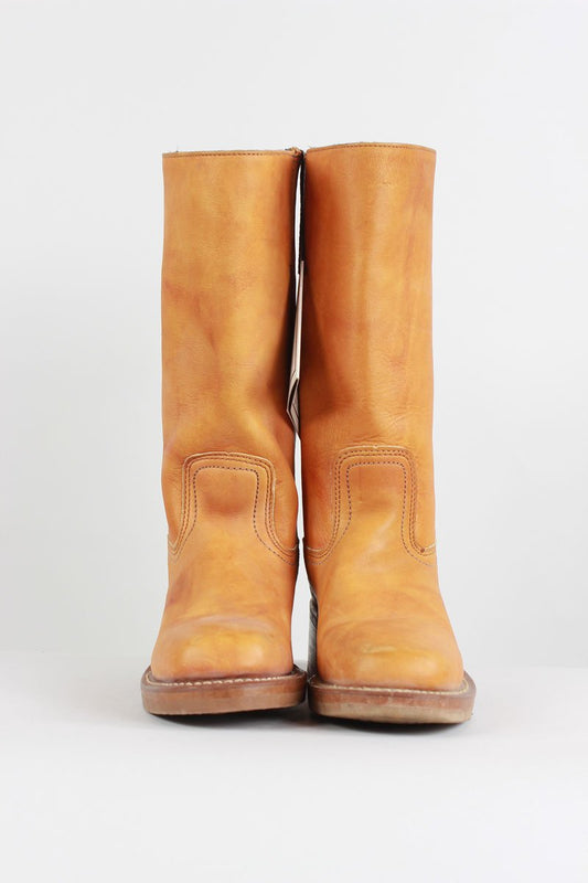 FRYE Tan Leather Calf Length Flat Boots Pull On - 6 US