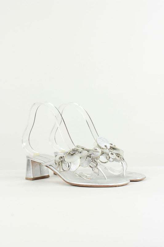 MIU MIU Silver Leather Slide Sandals - 39 IT | 9 US