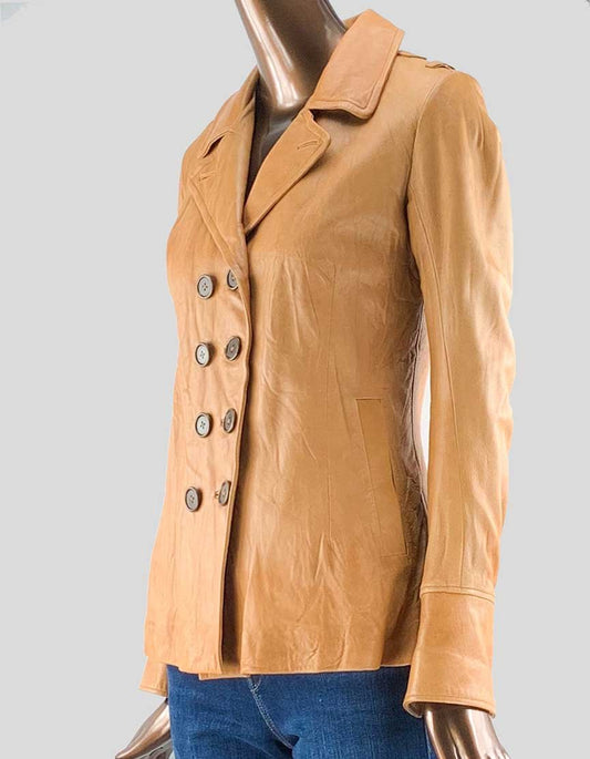 Duarte Jeans Tan Leather Jacket Aso Serena Gossip Girls - Small