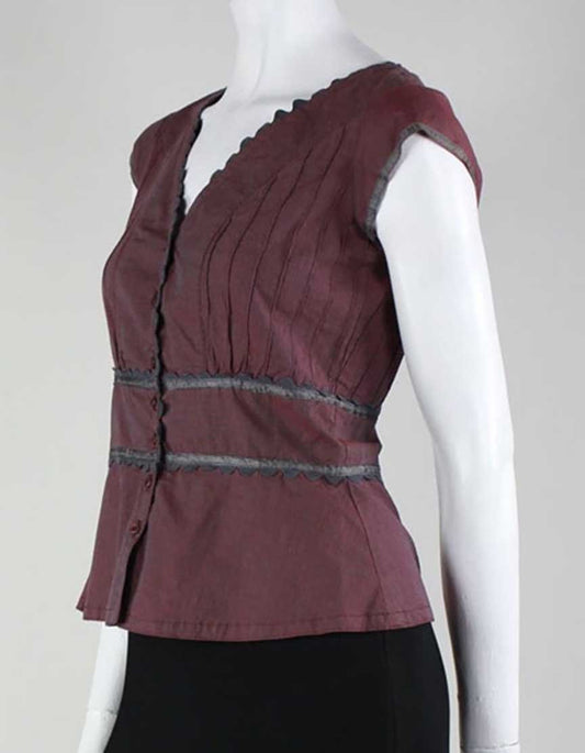 Katayone Adeli Cap Sleeve Button Down Blouse In Purple Size Small