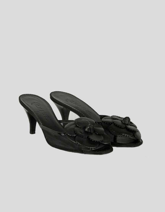 Chanel Open Toe Black Kitten Heel Mules - 38.5 IT