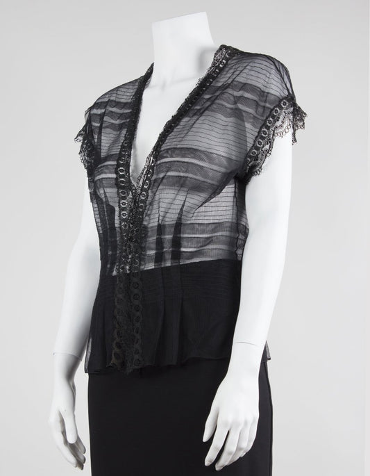 La Perla Sheer Lace V-Neck Capped Sleep Top With Stripe Design Size 44