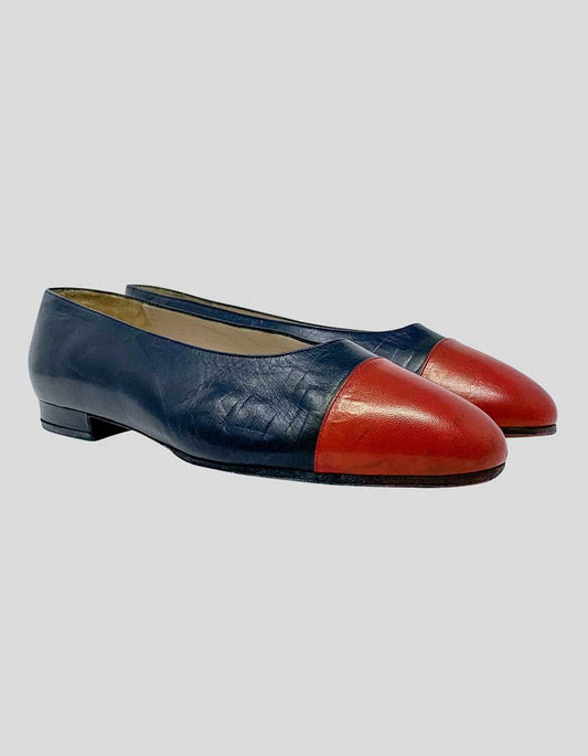 CHANEL Vintage Black and Red Flats - 7 US