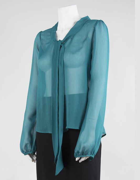 Myne Green Sheer Silk Blouse With Bishop Sleeves Size Small