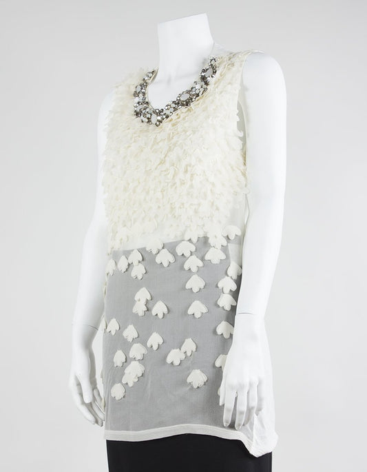 Givenchy Sleeveless Long Tunic T Shirt With Jeweled Neck And Flower Applique - X-Small