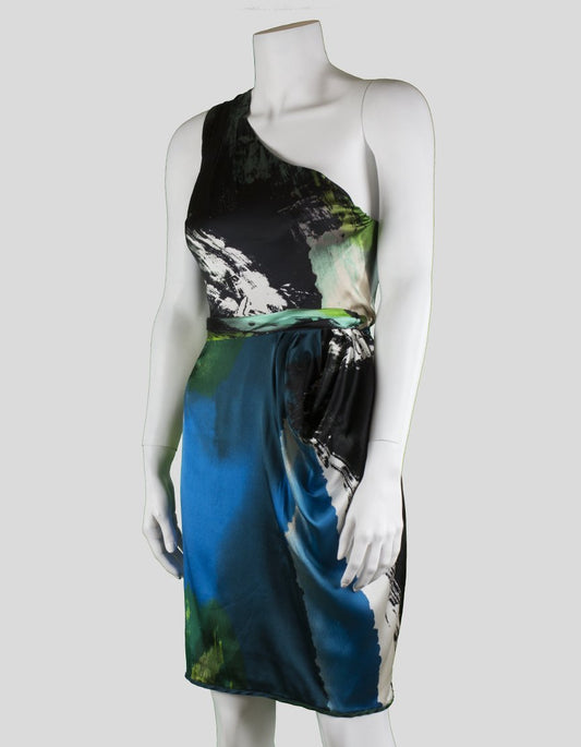 Black Halo One Shoulder To The Knee Abstract Print Silk Dress Size 4