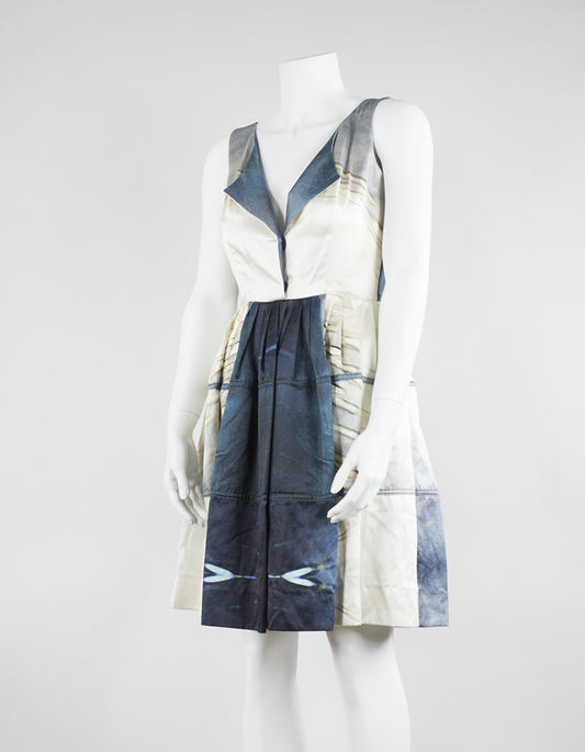 Michael Angel Gathered Waist Sleeveless Dress With A V-Neck Lapel - 4 US