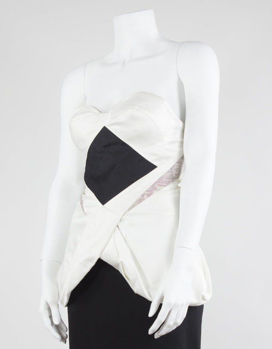Guishem Cream And Black Sleeveless Bustier With Double Peaked Hem Design - Small