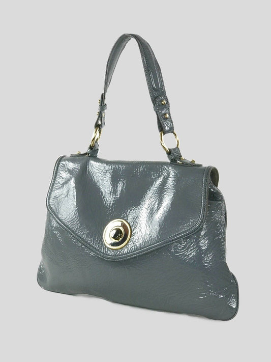 Badgley Mischka Grey Patent Leather Top Handle Envelope Bag With Detachable Strap