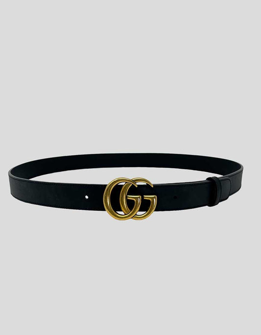 GUCCI Double G Logo Leather Belt - 12 US