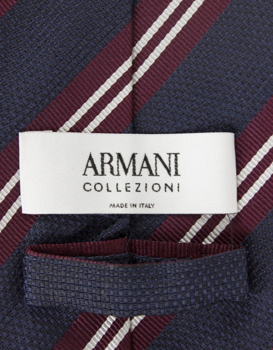 Armani Collezioni Blue Tie With Maroon And White Stripes