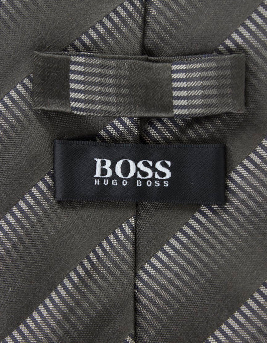 BOSS HUGO BOSS Brown Tie With Cream Stripe Design - One Size