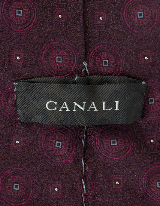 Canali Burgundy Tie With Burgundy And Red Circle Design