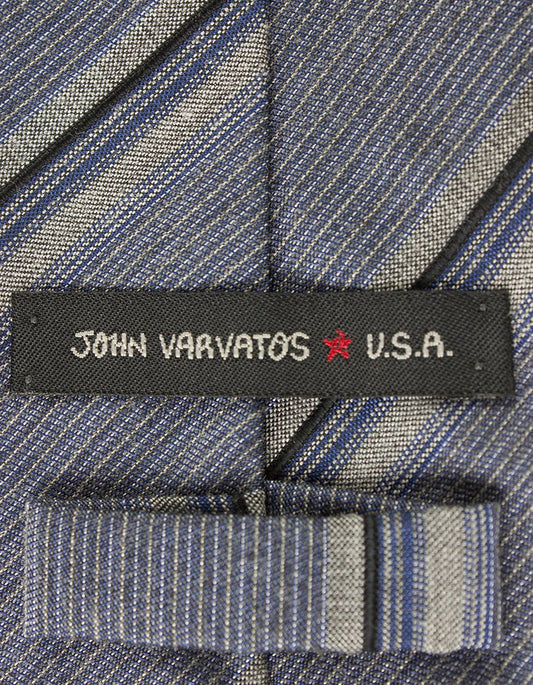 JOHN VARVATOS USA Grey Black And Blue Diagonally Striped Tie - One Size