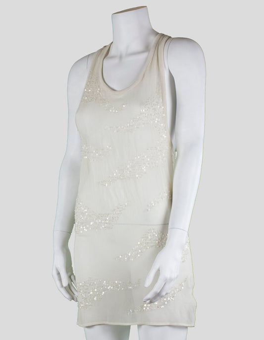All Saints Alexander Tank Dress With Knotted Racer Back Hand Embellished Sequins Transparent Silk Georgette X-Small