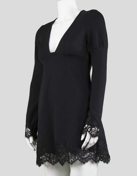 Ingwa Melero Deep V Long Sleeve To The Knee Mini Dress With Lace At Cuffs And Hem Size Small