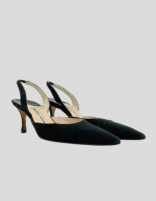 Manolo Blahnik Carolyne Satin Low Heel Slingback Pumps - 36.5 IT | 6.5 US
