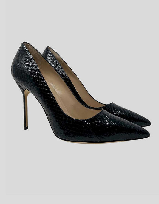 Manolo Blahnik Black BB Snakeskin Embossed Pumps - 39 IT | 9 US