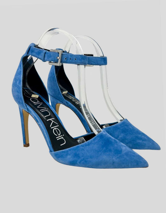 CALVIN KLEIN Baby Blue Suede Ankle Strap Heels - 7M US