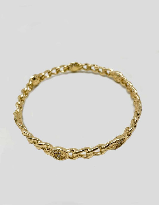 Melinda Maria Margaret Gold Pod Bangle Bracelet With Chain Link Accent