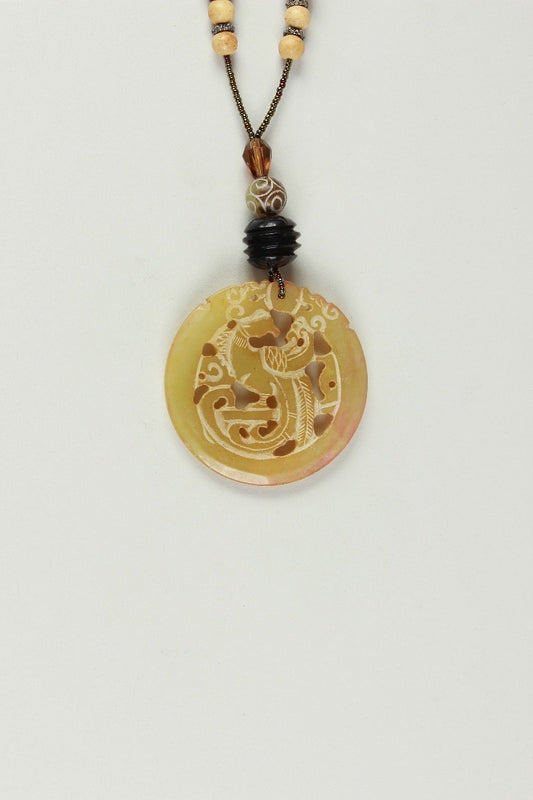 Theresa Goodall Heavily Beaded Necklace With A Large Tan Stone Drop Pendant