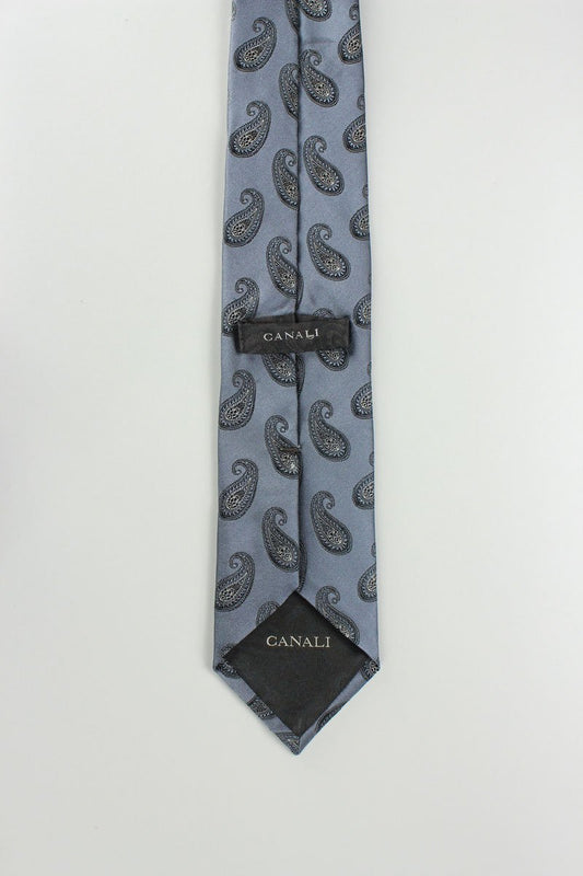 Canali Tie In Grey With A Purple Hue And Paisley Print