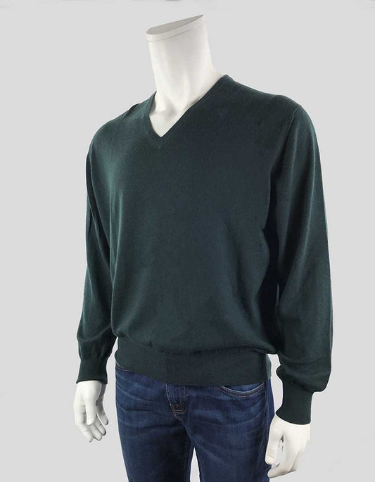 Loro Piana Classic Green V-Neck Cashmere Sweater 54 It