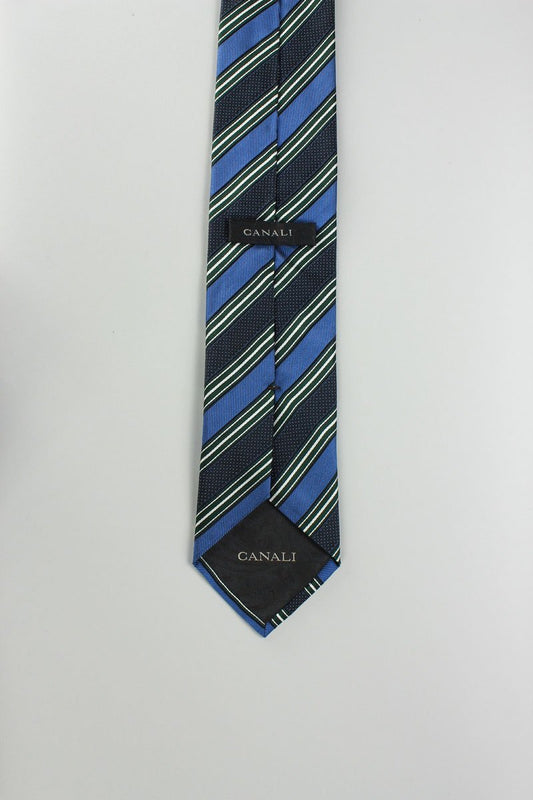 Canali Blue White And Black Striped Tie With White Pinhead Design