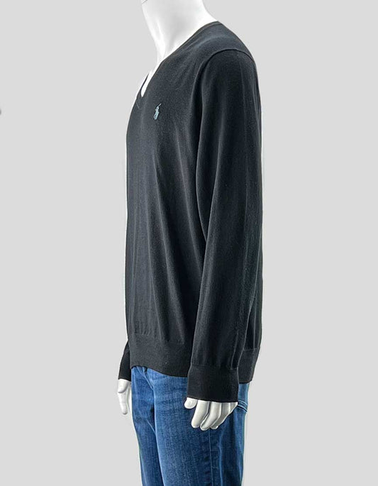 POLO RALPH LAUREN black merino wool v-neck sweater - X-Large