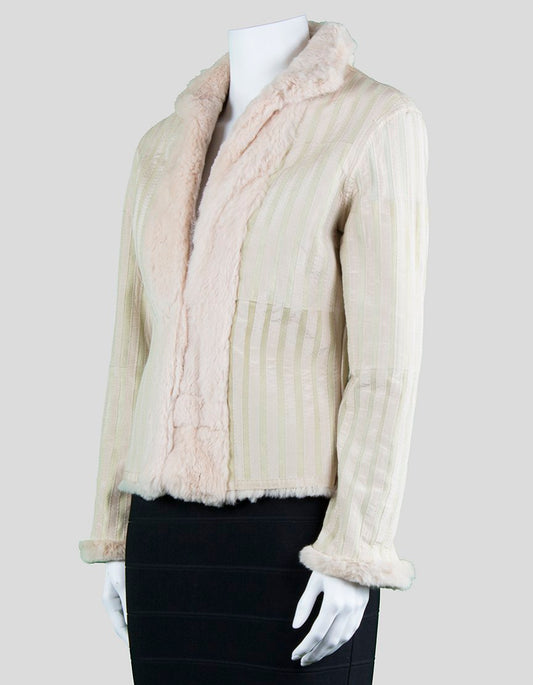 Sheri Bodell Quilted Shearling Jacket With A Mandarin Collar And Rabbit Fur Lining Size Small