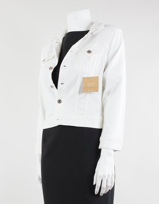 Ag White Denim Harper Jacket With Neon Embroidered Back Panel Size Medium