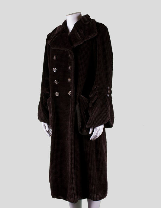 Emporio Armani Brown Velour Esq Three Quarter Length Double Breasted Coat With Open Pockets Size 8