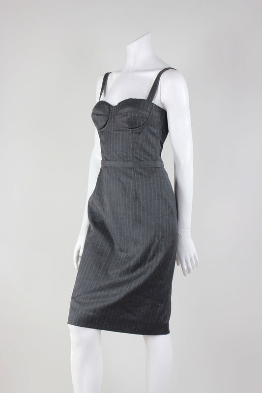 Dolce & Gabbana Bustier Grey Pin Striped Sleeveless Dress - 40 IT