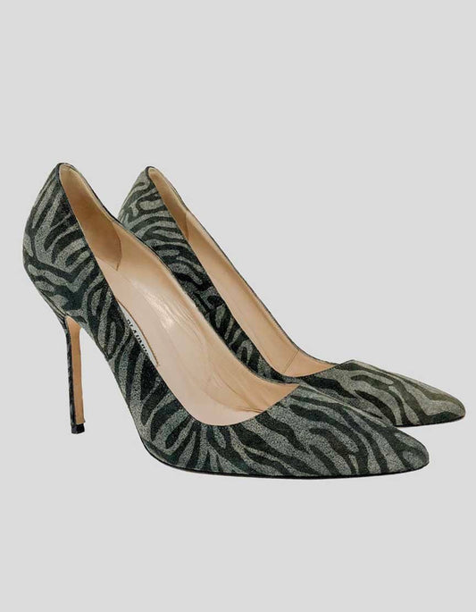 MANOLO BLAHNIK Bb Grey Zebra Print Suede Pumps - 36.5 IT | 6.5 US
