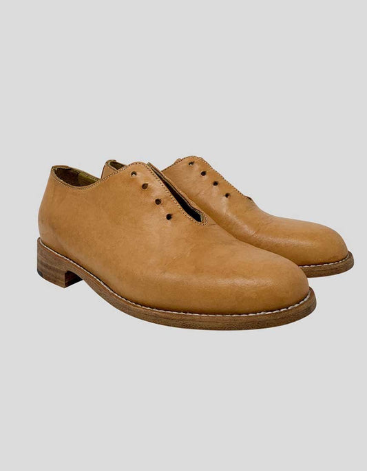 Esquivel Tan Leather Laceless Oxfords With Stacked Heels - 6 US