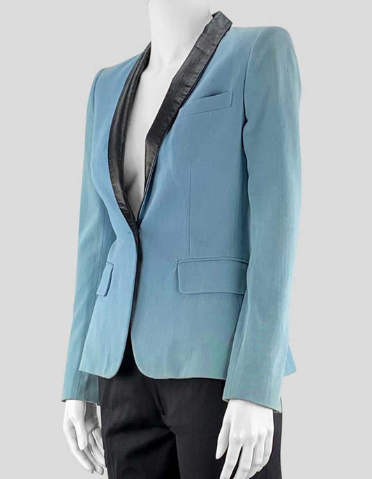 A.L.C. Blue Blazer With Blacker Leather Trim - Petite