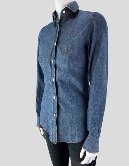Salvatore Piccolo Cotton Chambray Button Down Denim Shirt Women X-Small