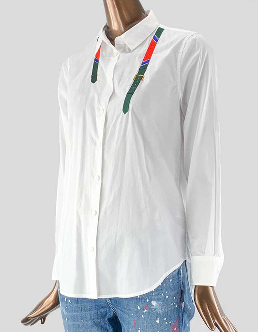 Comme Des Garcons White Blouse With Velvet Tie Small