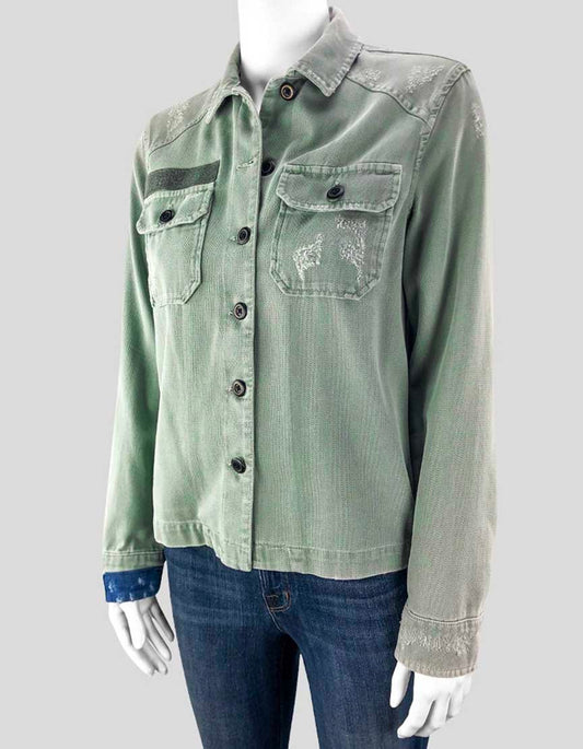 All Saints Army Green Distressed Shirt Denim Jacket Women - 2 US