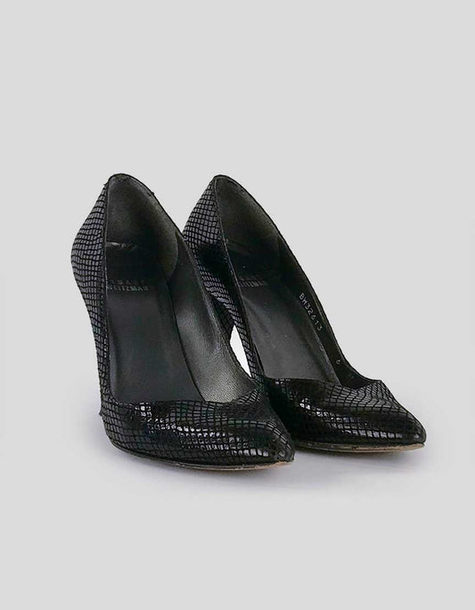 Stuart Weitzman Black Leather Faux Snakeskin Pumps - 6M US