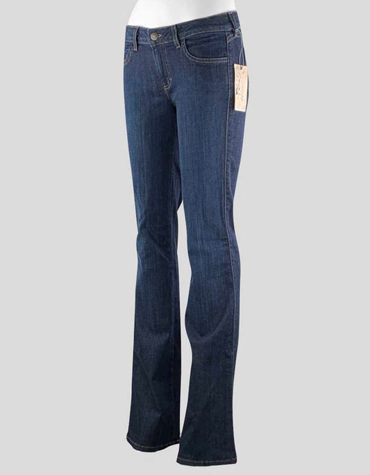 Siwy Women's Harley Slim Boot 5 Pocket Mid Rise Jeans With Zip And Button Front Closure Contrast Stitching Bronze Tone Hardware 28 US