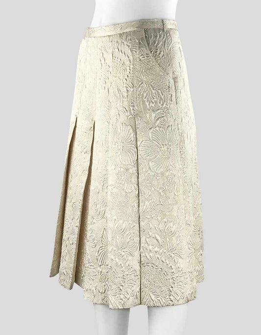 Luca Luca Women's Gold On Gold Flower Embroidered And Pleated Knee Length Evening Skirt With Side Pockets Side Zipper Size 42 It