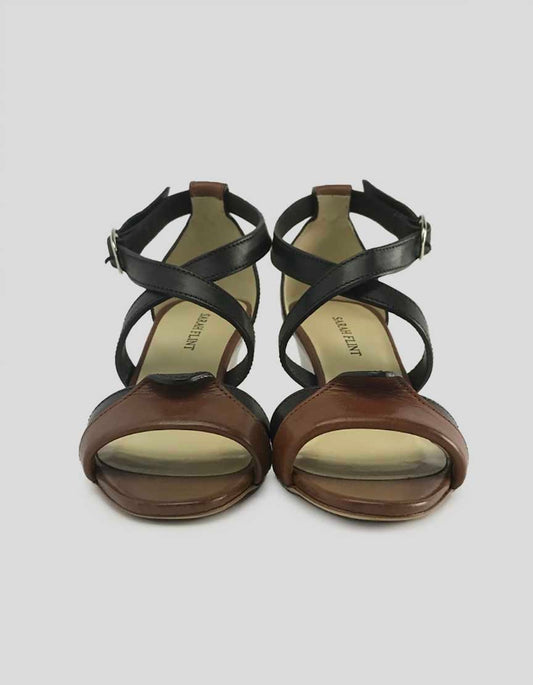 Sarah Flint Stanwyck Brown And Black Leather Wedge Sandals - 36 IT | 6 US